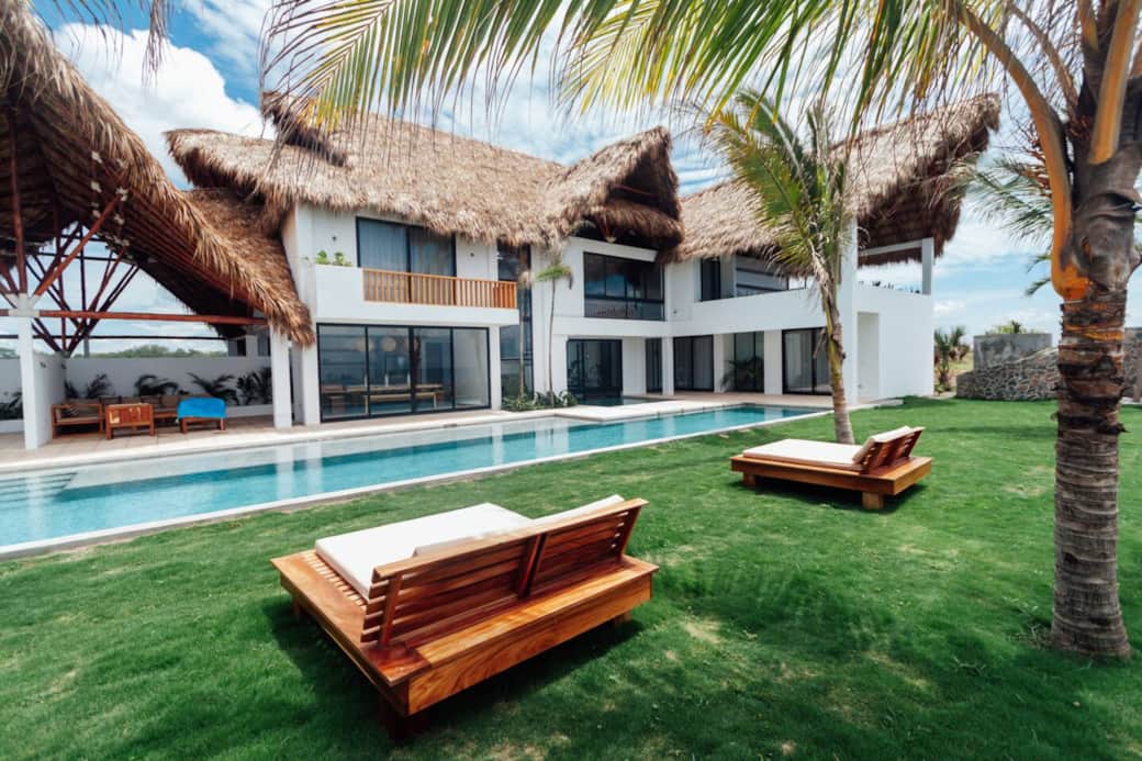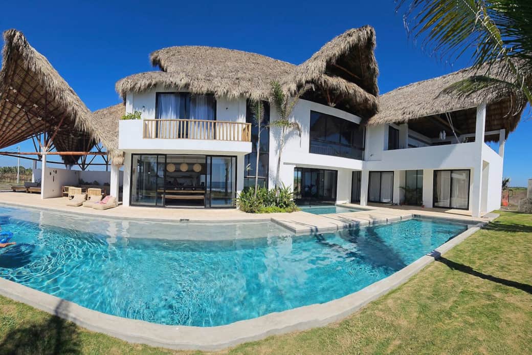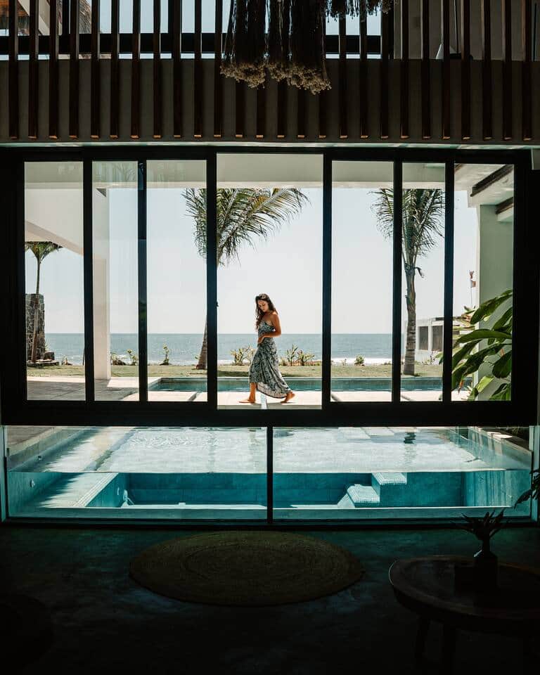 Entspanne dich in dieser modernen Villa am Strand von El Paredón, Guatemalas schnellst wachsender Surfstadt. Das offen gestaltete Haus mit gewölbtem Palapa und Wandfenstern verbindet Innen- und Außenleben perfekt. Genieße Meer- und Poolblick von jeder Ebene.