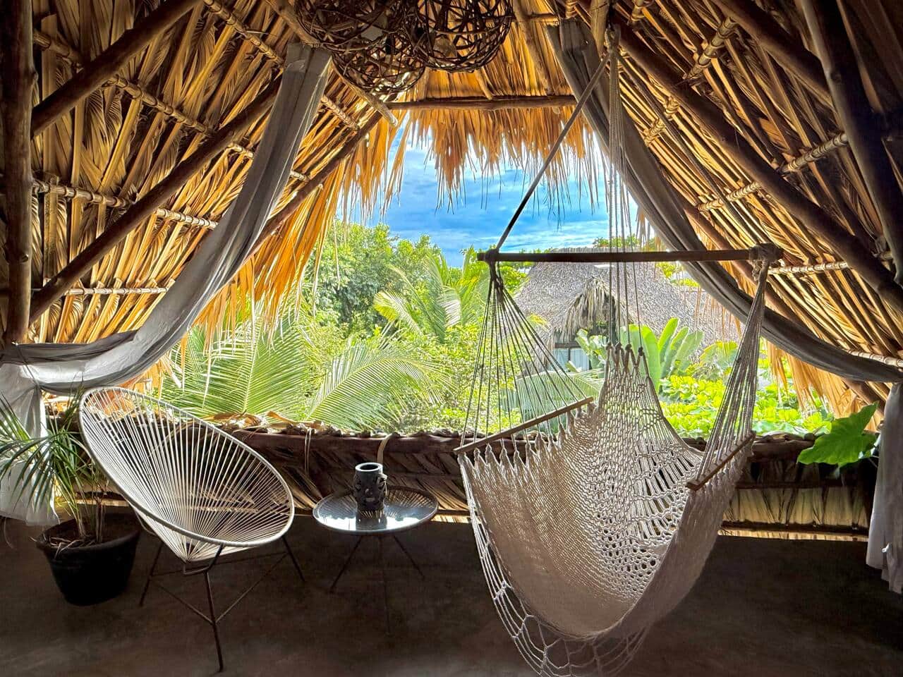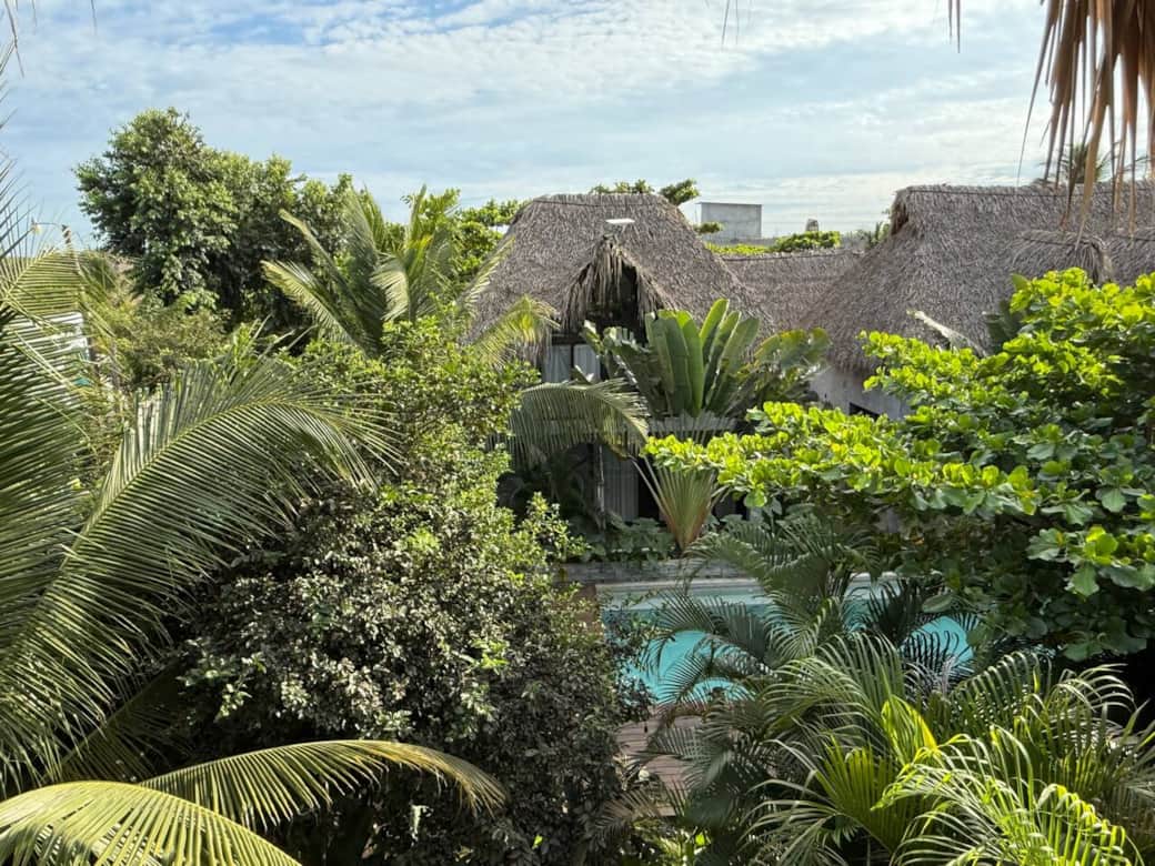 It's a cool and comfortable outdoor room on the third level of Casa WhiteWash, and it boasts a wonderful view. The entrance is on the side of the house with a steep staircase (please consider this if you have an injury or condition that makes climbing stairs difficult).